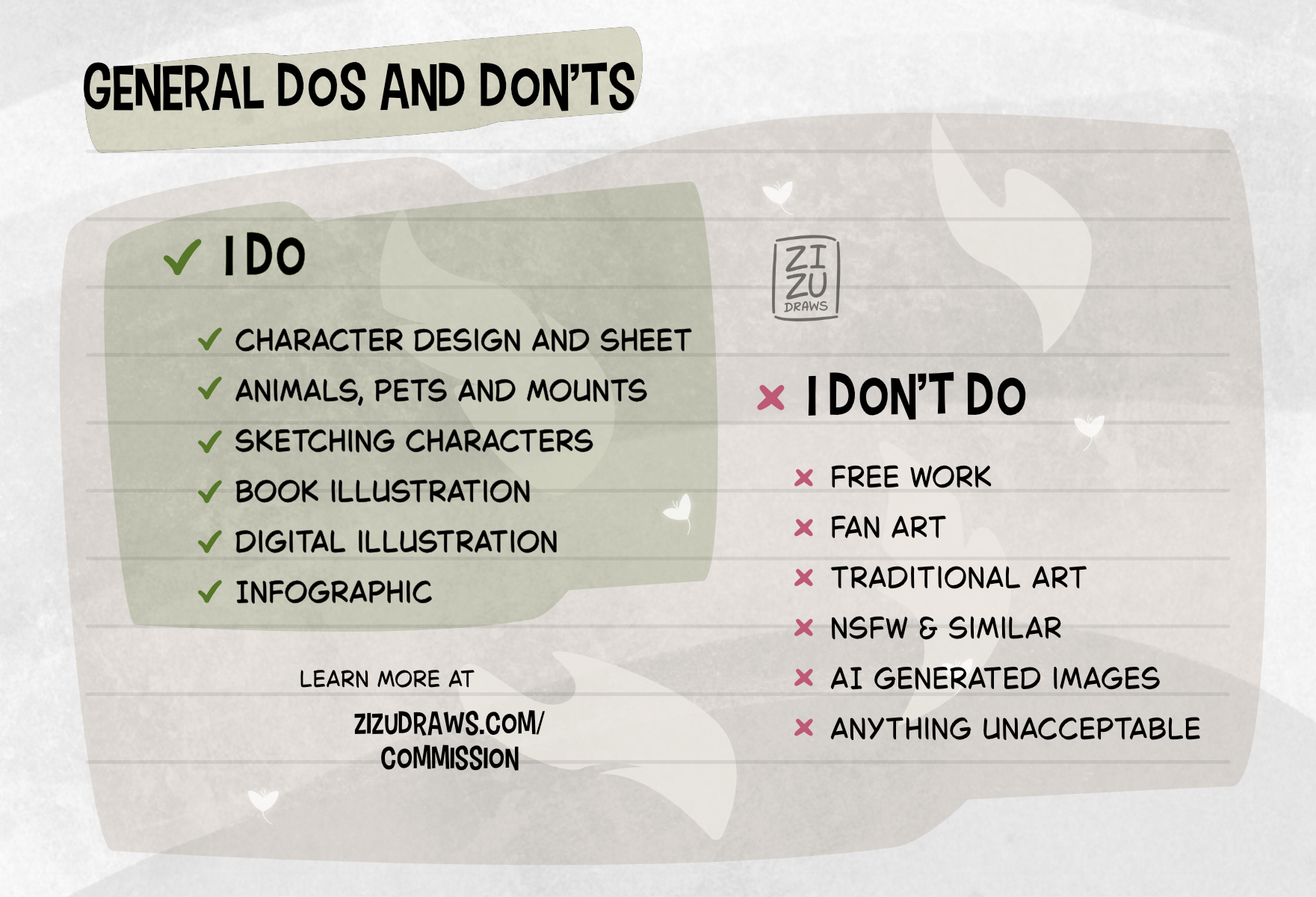 Thank you for reading through! Feel free to contact me through my contact page or by sending an e-mail to info@zizudraws.com