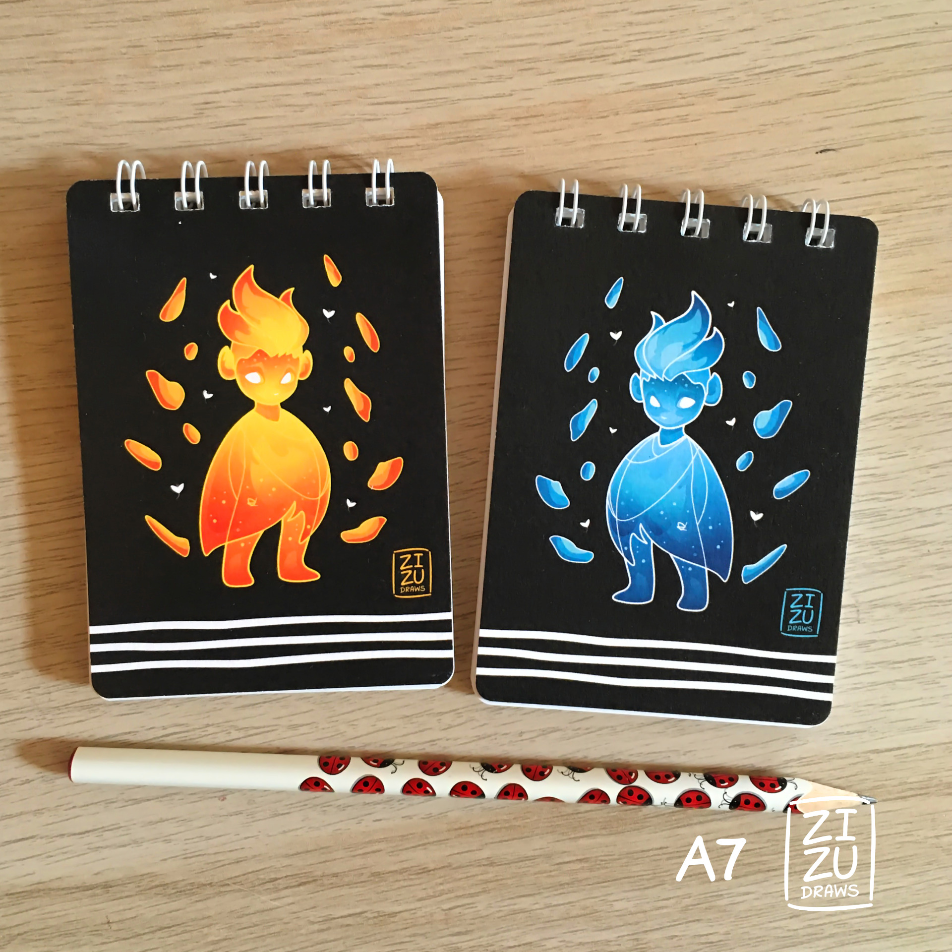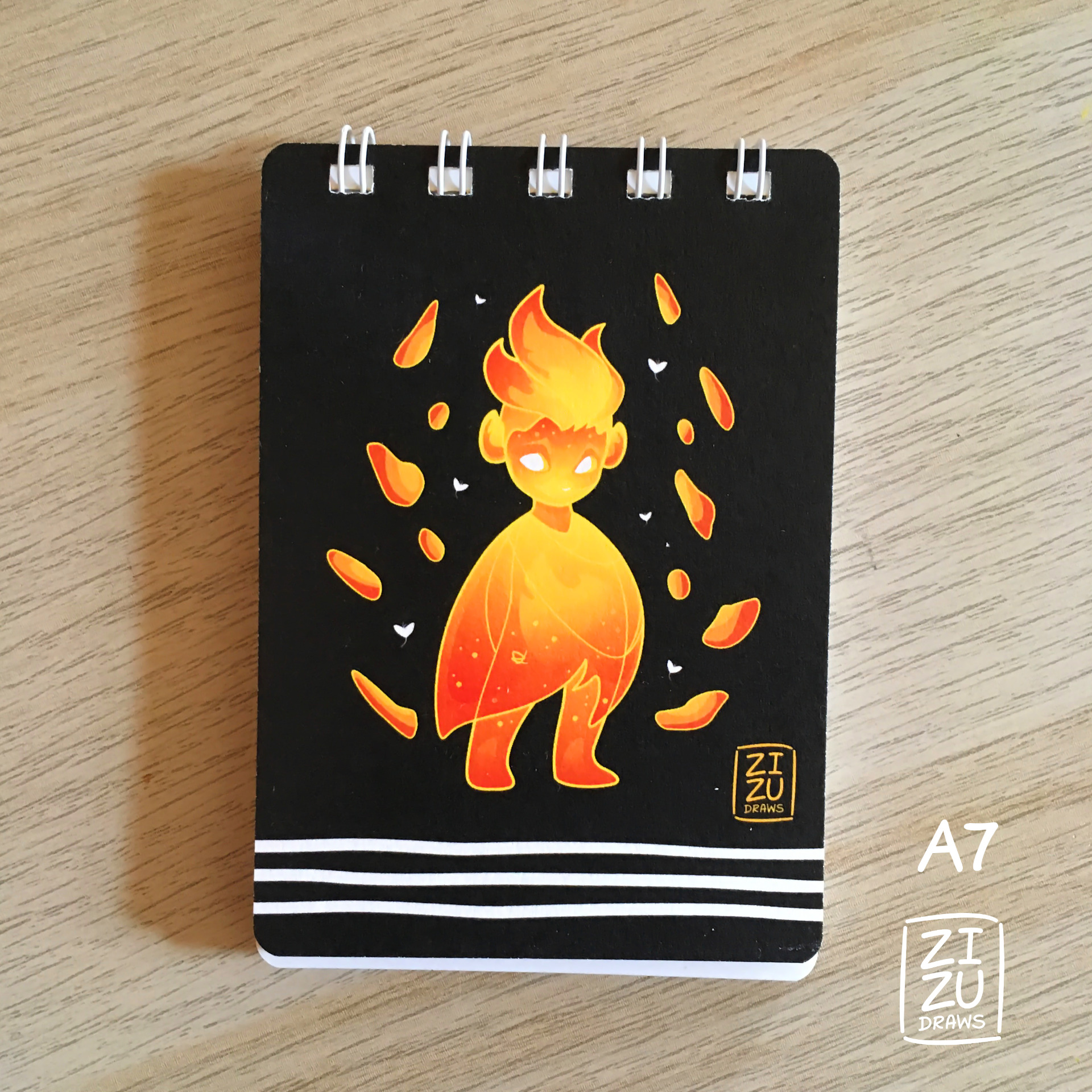 Flam is one of my original characters, a little fire creature. If you love fantasy, elements or friendly little creatures, get one of these notebooks! Wherever you go, in any season, Flam will always bring along a nice and mysterious atmosphere ^^