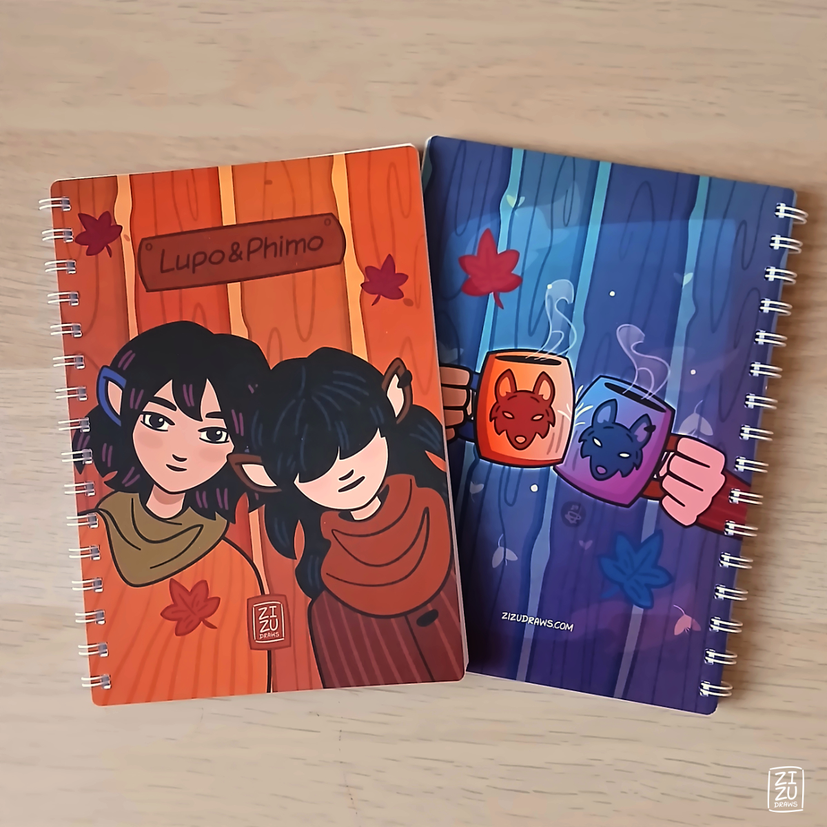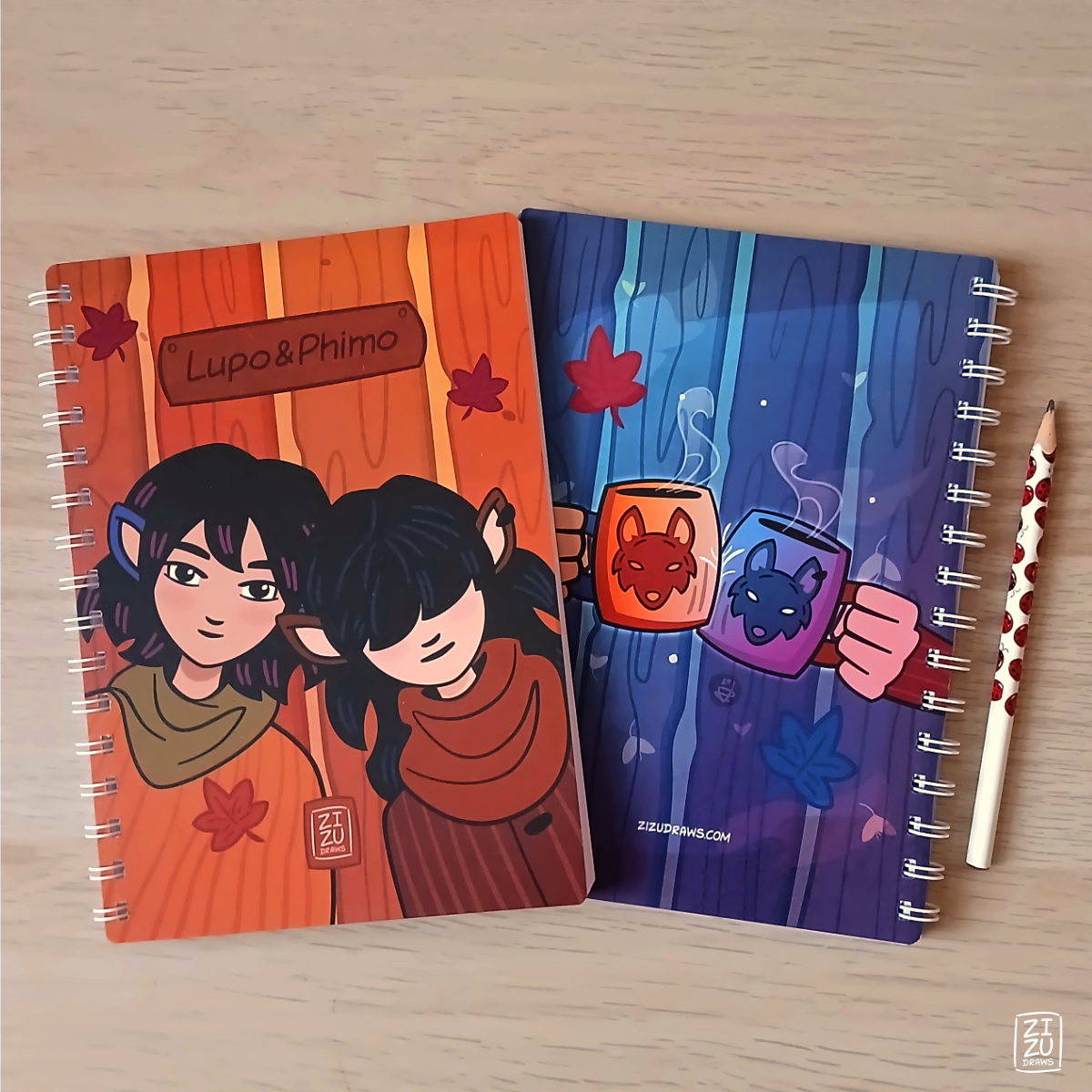 Lupo & Phimo are sisters, one of my original characters, partially human and wolves. If you love piece, nature and coffee, get one of these sketchbooks! Wherever you go, in any season, Lupo & Phimo will always bring along a nice and cozy atmosphere ^^