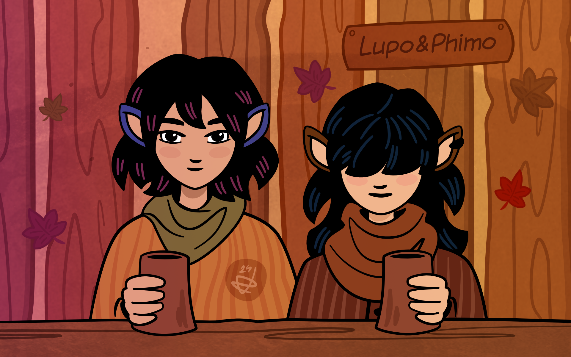 Lupo&Phimo is my first comic series, which I started in 2017 and I am constantly developing. The story revolves around two sisters who live together, with a slight age difference, individuality and a good sense of humor. They are part human, part wolf, and sometimes side characters are there too. Lupo and Phimo appear on my merch, social media posts and practically everywhere. Check out some of my previous comics below!